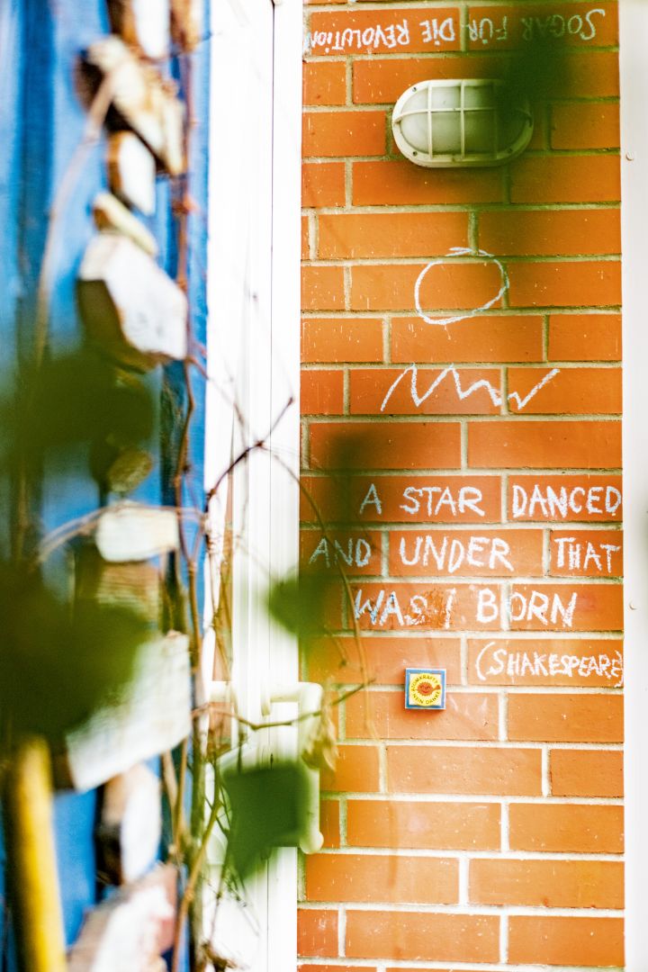 Am Ende eines kleinen Fußweges gegenüber von Feldern, Bäumen und Nebel steht ein Reihenhaus in Bothfeld, das aus der Reihe tanzt. Das Shakespeare-Zitat „A star danced and under that was I born" ist mit Kreide an eine Hauswand geschrieben, ein „Atomkraft? Nein Danke"-Aufkleber auf der Klingel, durch das Fenster springt mir ein auffälliges Plakat mit lauter Typo in Rot, Weiß, Schwarz entgegen – die Collage „Make Capitalism History" des Schriftstellers. Noch bevor ich die Namen Hänel und Gerold auf dem Schild lese, weiß ich, dass dieses Haus zu ihnen gehört und ich hier richtig bin.