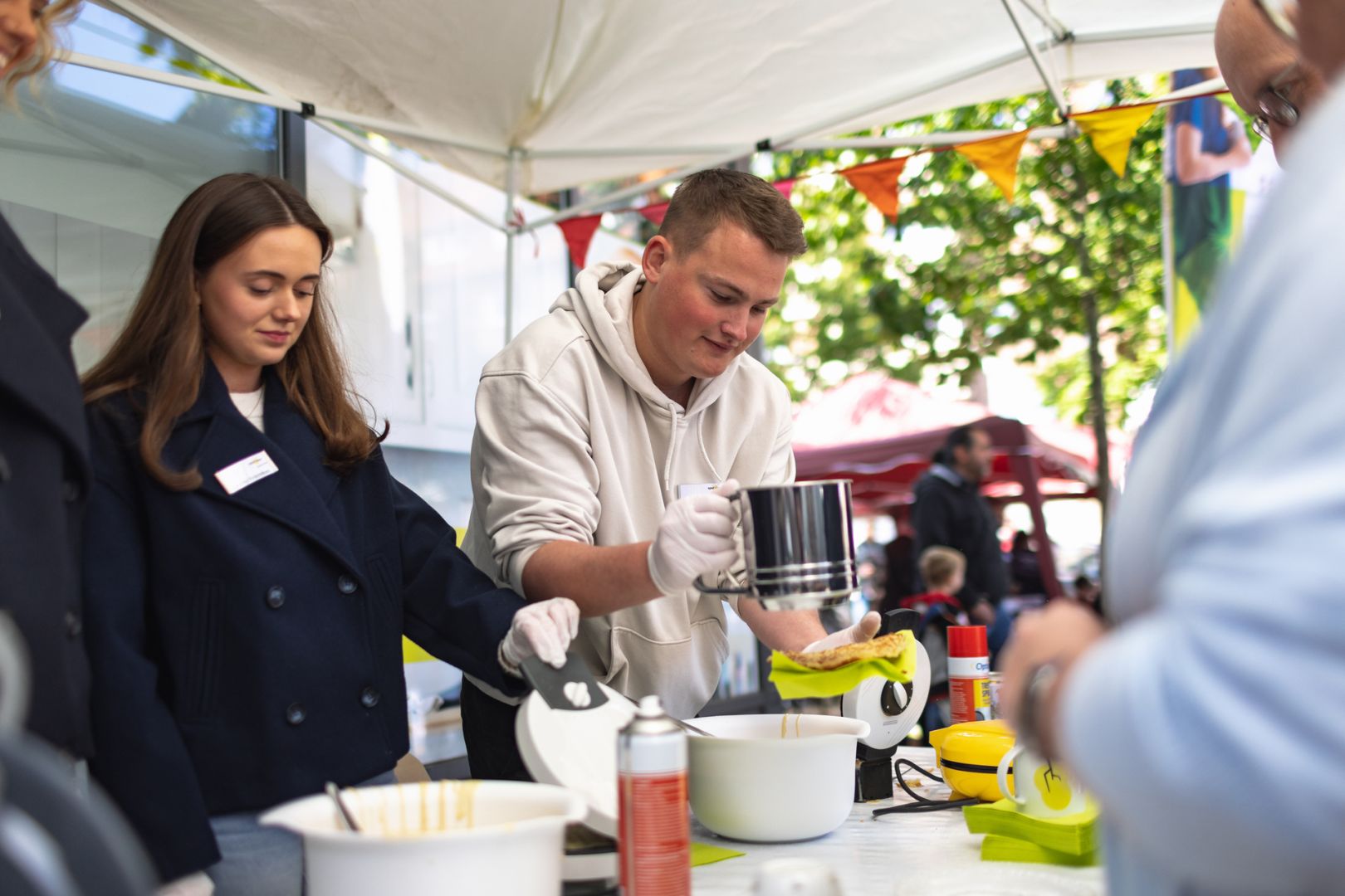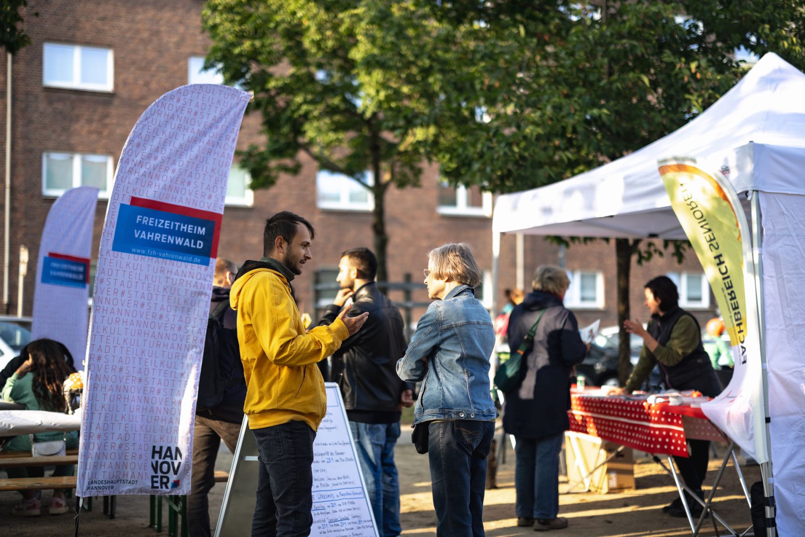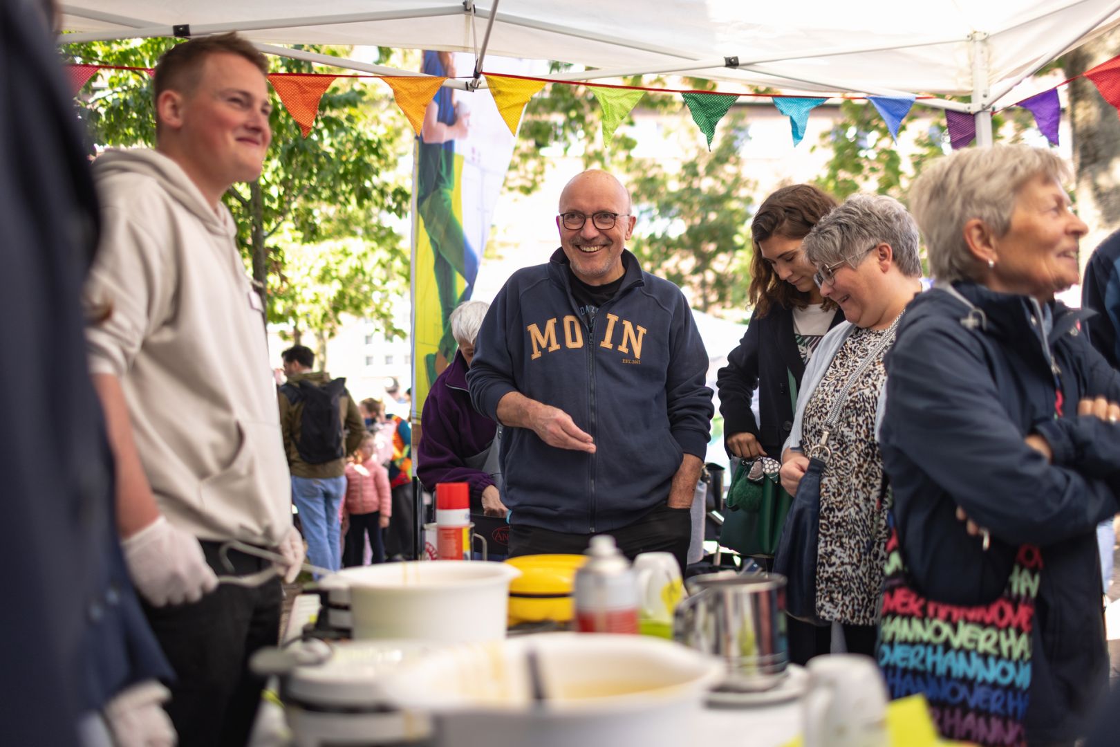Auch in diesem Jahr organisierte spar+bau gemeinsam mit dem AWO Bezirksverband Hannover das große Stadtteilfest, das sich nicht nur für Vahrenwald, sondern auch für ganz Hannover zu einem besonderen Ereignis entwickelt hat. Ein Novum ist etwa die aufgestellte „Plauderbank“, auf der die anwesenden Politiker ins Gespräch mit den Bewohnern kamen. So beantworteten die stellvertretende Ministerpräsidentin Julia Willie Hamburg oder der Bürgermeister der Stadt Hannover, Thomas Hermann, auf Augenhöhe die vielseitigen Fragen der Bürger – ein Beitrag zur Stärkung der Demokratie. Die Stadtgesellschaft war rege vertreten und feierte mit uns. Einen weiteren neuen Beitrag zum Fest leisteten unsere sieben Azubis mit ihrem eigenen spar+bau-Stand: Sie zeigten viel Engagement beim Waffelnbacken und Armbänderknüpfen.