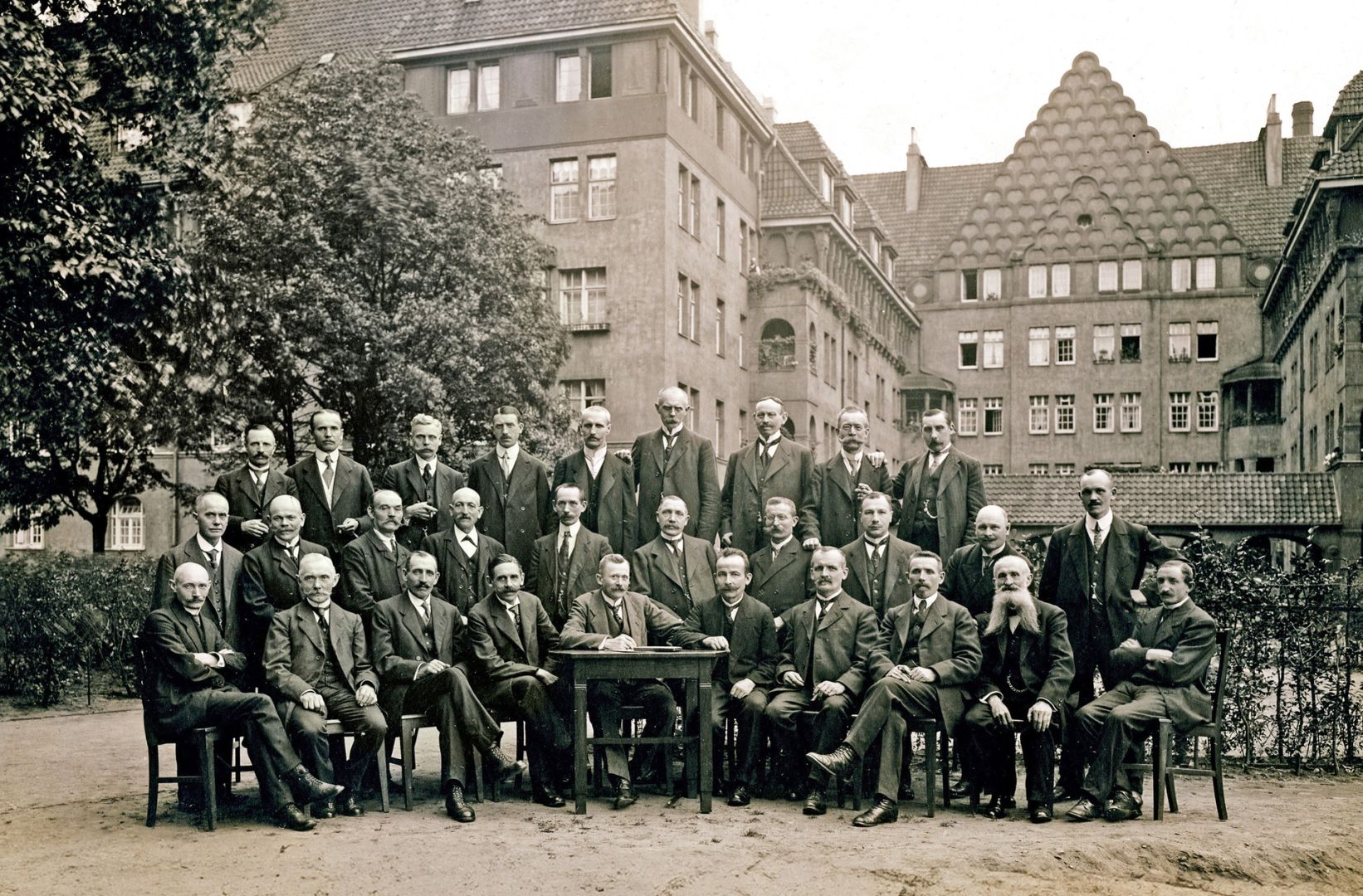Der Brüggemannhof um 1920: Heinrich Brüggemann im Kreis von Aufsichtsrat und Vorstand. ©spar+bau
