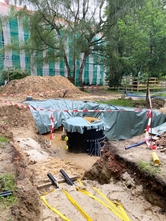 In Wettbergen folgten nach der energetischen Sanierung der Gebäude und dem Einbau der Erdwärmesonden im ersten Bauabschnitt umfangreiche Arbeiten an den Außenanlagen: In den Vorgärten der Häuser Rudolfstraße 1–5 und In der Rehre 55–59 wurden die Regen- und Schmutzwasserleitungen erneuert. Neue Hauszuwegungen, Fahrradabstellflächen, Briefkästen, Mastleuchten, ein weiteres Rollatorhaus sowie ein vergrößerter Müllplatz ergänzten die Maßnahme. Auch die Stellplätze, Gehwege und Grünflächen mit Stauden, Rasen und neuen Gehölzen wurden neu gestaltet. Im November 2025 begann der zweite Bauabschnitt an den Häusern In der Rehre 47–53. Auch hier wurden die Regen- und Schmutzwassergrundleitungen der Häuser 51 und 53 erneuert und es wurde eine Zisterne zur Bewässerung eingebaut. Zudem wurden Leitungen für Beleuchtung und Glasfaser verlegt. Hier wie in den Häusern 47 und 49 gehen die Maßnahmen in diesem Frühjahr weiter.